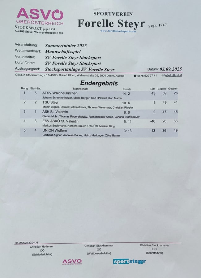 Stocksporturniere Sommer 2025