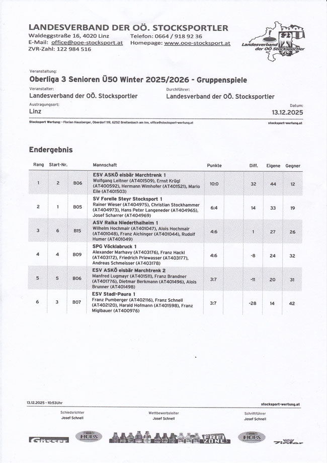 Helmut Draber, Hans Peter Langender, Christian Stockhammer und Rainer Wieser