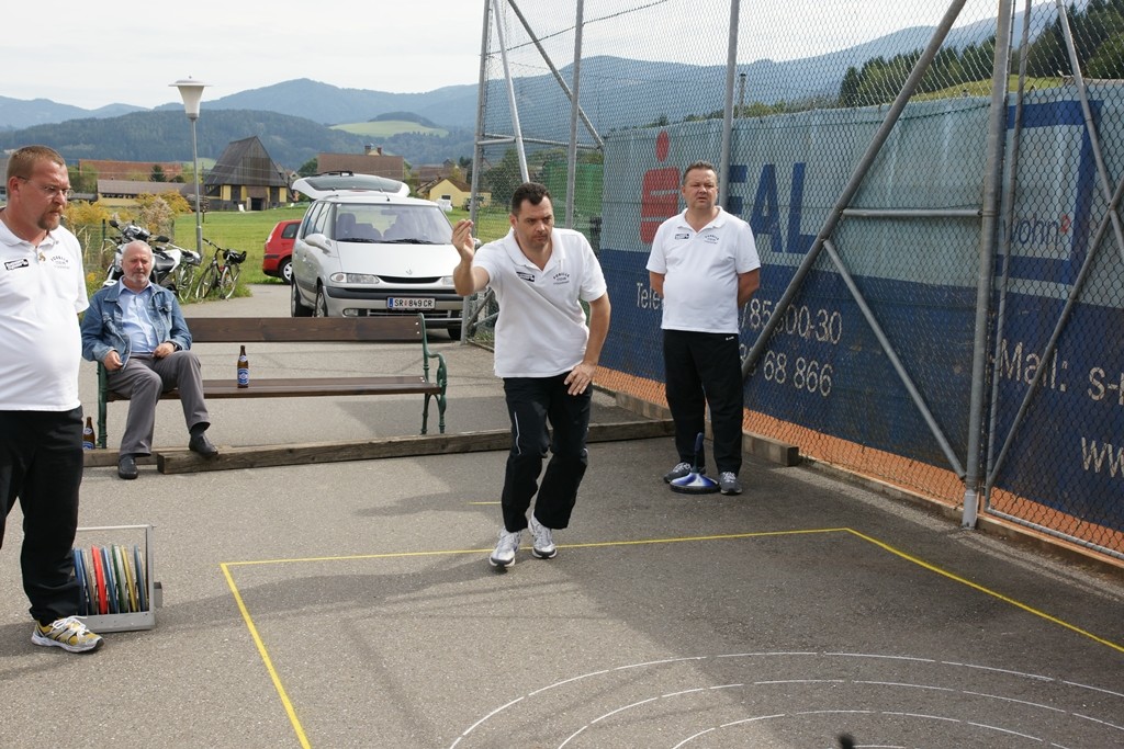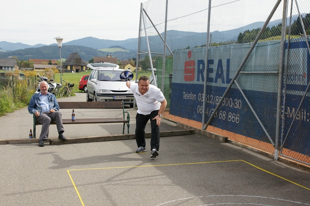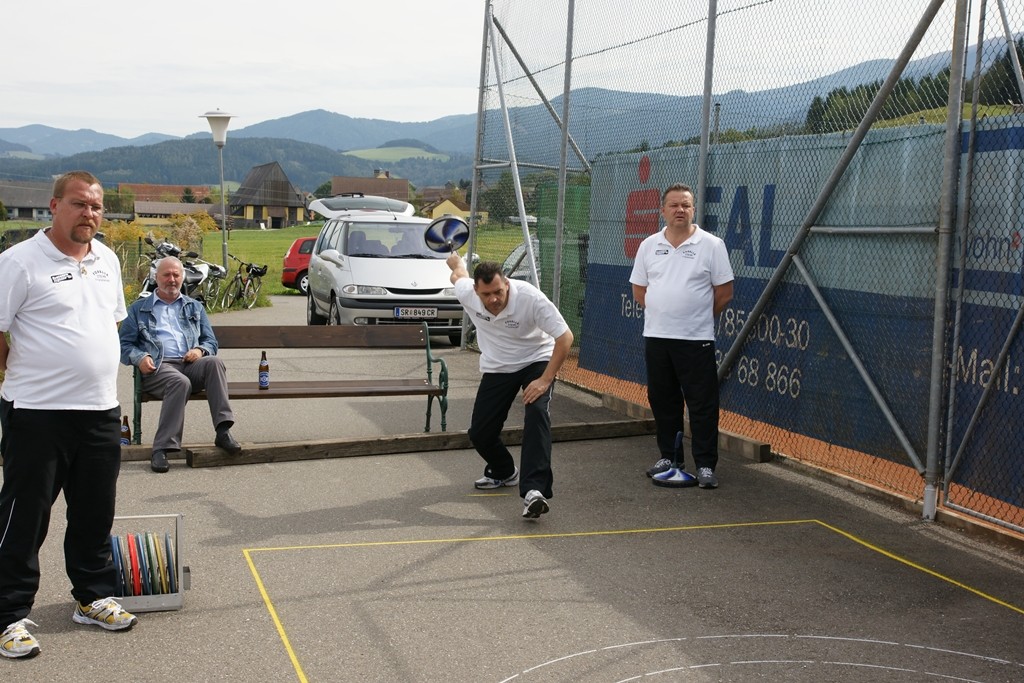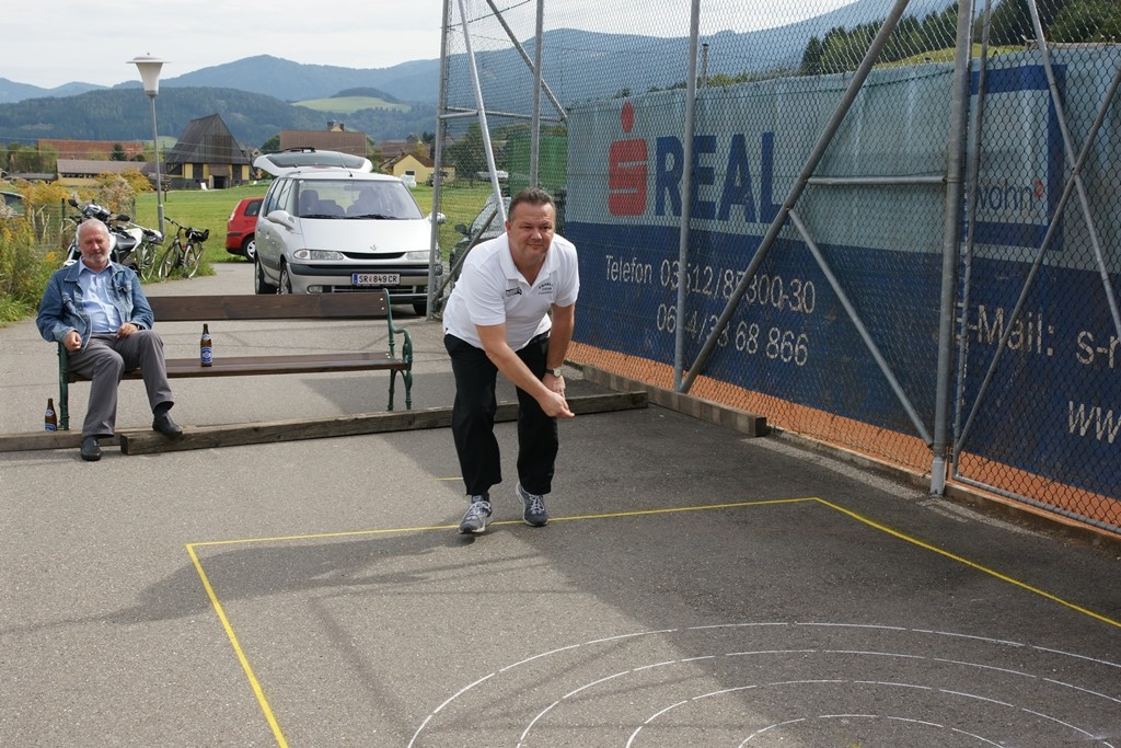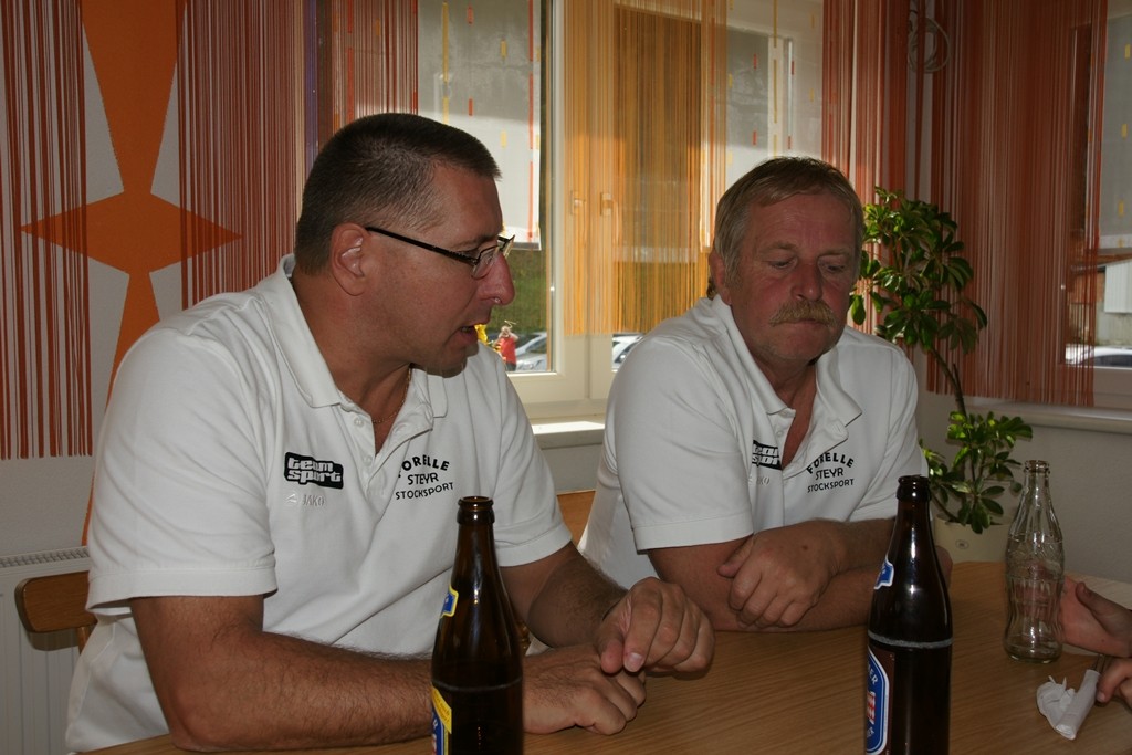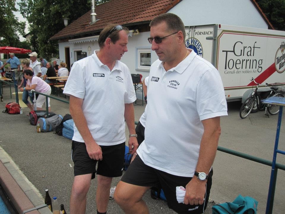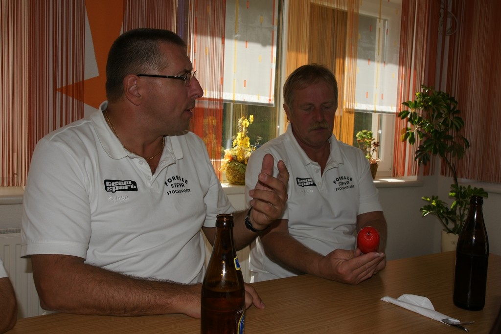 Vervollständigt wurde das Forelle Team am Samstag, wo noch drei Sportkollegen dazu stießen und am Turnier der Sportfreunde Maria Buch bei Zeltweg teilnahmen. Rudolf Haiberger und Christian Stockhammer konnten sofort am Mannschaftsspiel teilnehmen und Erich Stockhammer war als interessierter Zaungast ebenfalls von den Anweisungen des Nationaltrainers begeistert und hielt das eine oder andere Schwätzchen mit Johann Schabereiter. Das Turnierergebnis war mit den Rängen 5 und 10 unter 12 Mannschaften ernüchternd, aber vieles vom am Vortag erlernten konnte unter Wettkampfbedingungen gleich ausprobiert und getestet werden.