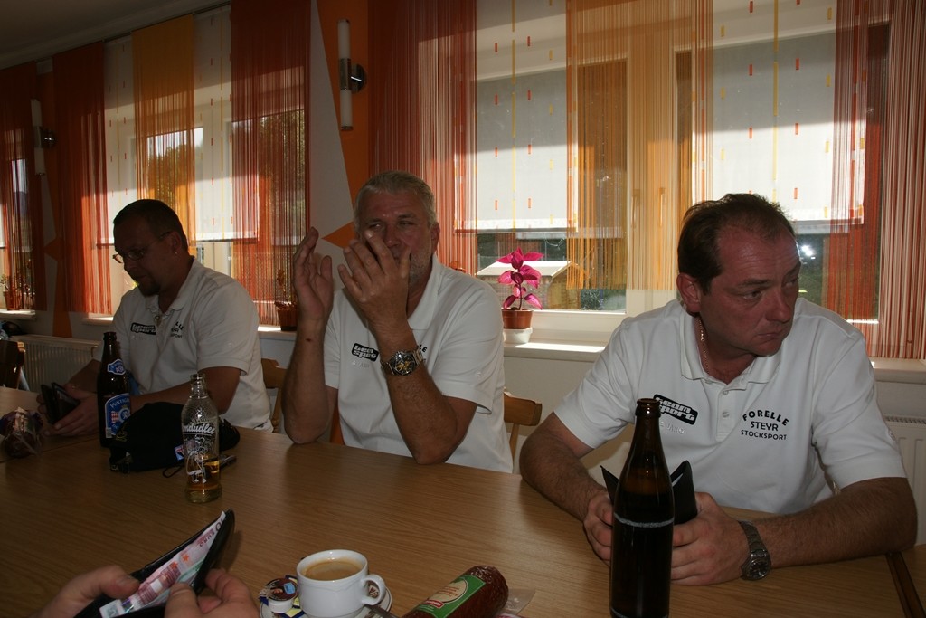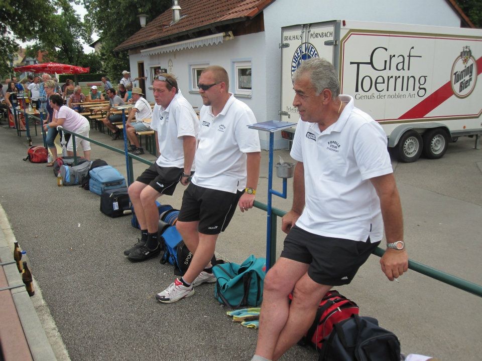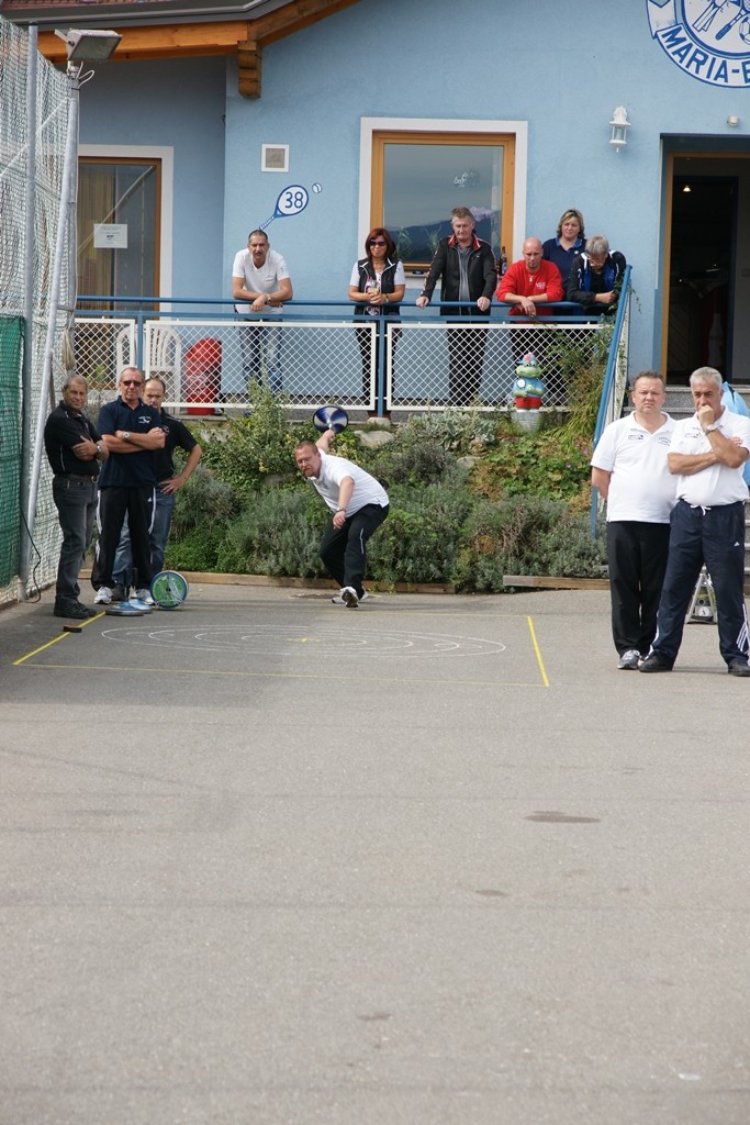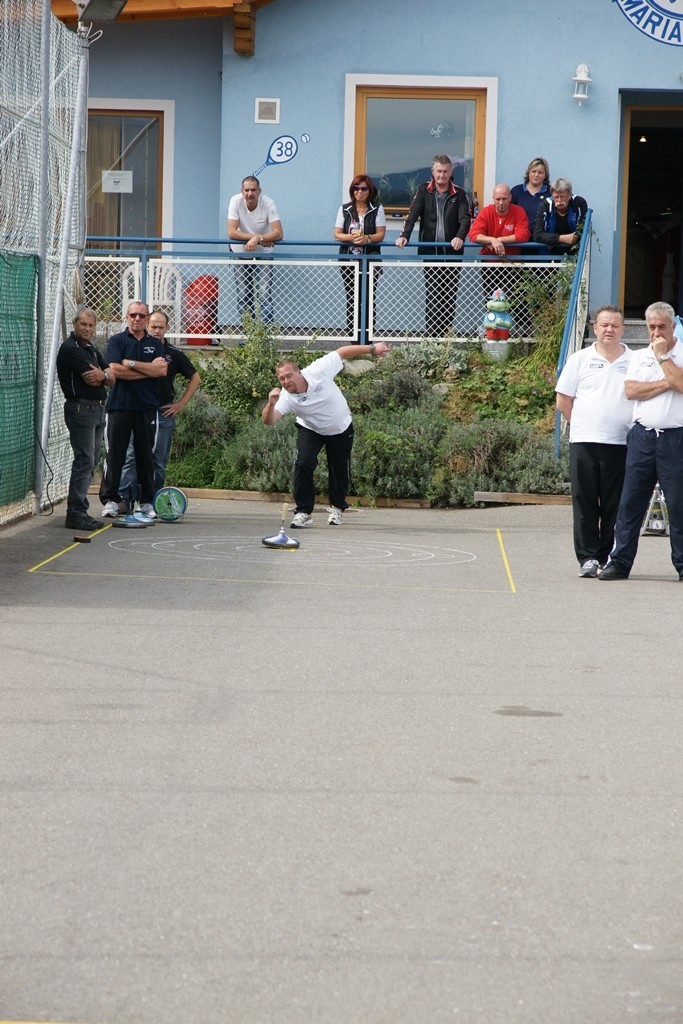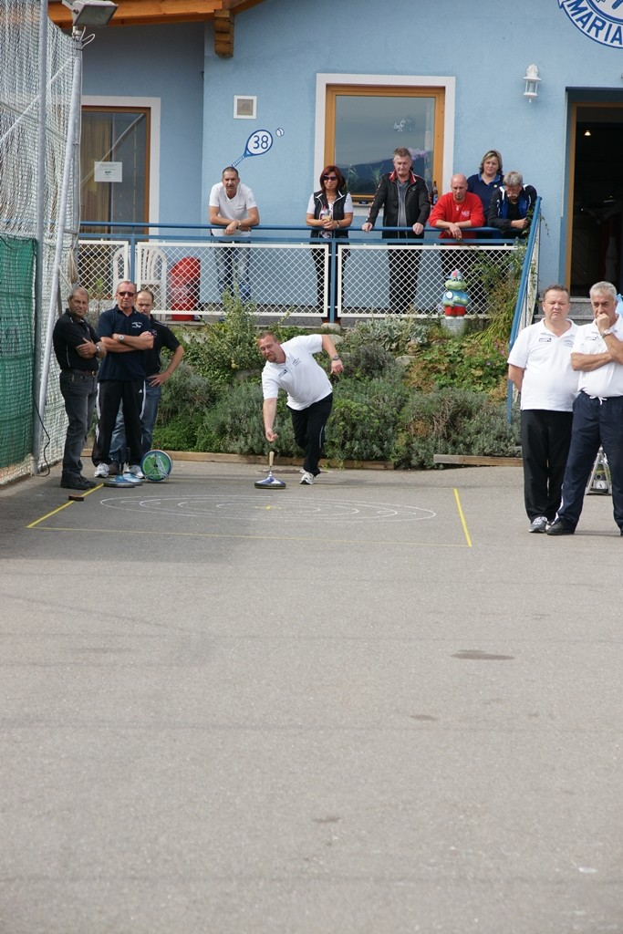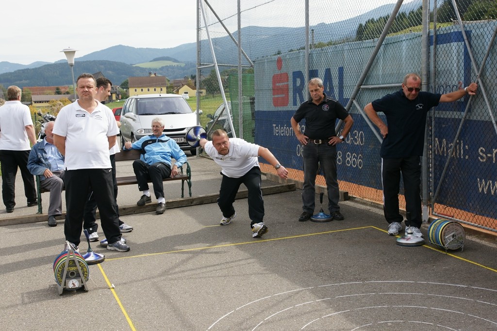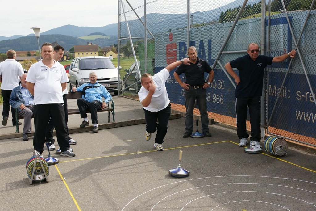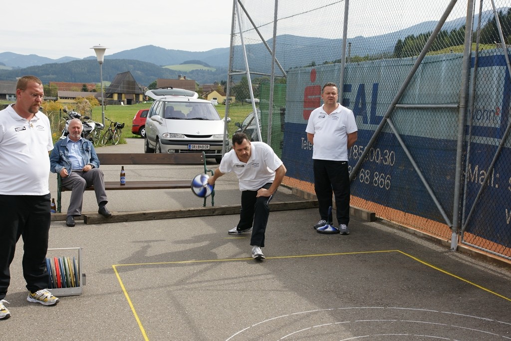 Vervollständigt wurde das Forelle Team am Samstag, wo noch drei Sportkollegen dazu stießen und am Turnier der Sportfreunde Maria Buch bei Zeltweg teilnahmen. Rudolf Haiberger und Christian Stockhammer konnten sofort am Mannschaftsspiel teilnehmen und Erich Stockhammer war als interessierter Zaungast ebenfalls von den Anweisungen des Nationaltrainers begeistert und hielt das eine oder andere Schwätzchen mit Johann Schabereiter. Das Turnierergebnis war mit den Rängen 5 und 10 unter 12 Mannschaften ernüchternd, aber vieles vom am Vortag erlernten konnte unter Wettkampfbedingungen gleich ausprobiert und getestet werden.
