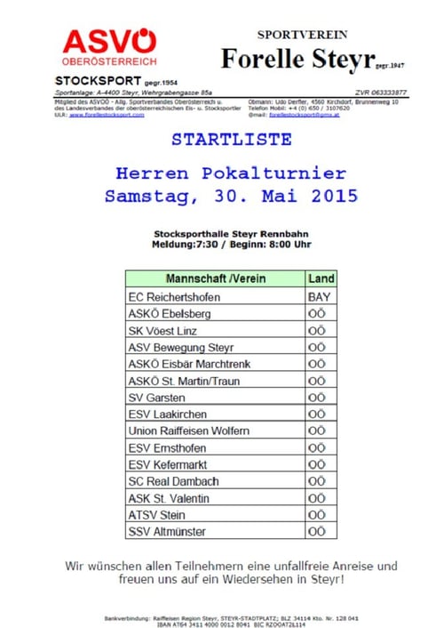 Ausschreibung + Startliste Polkalturnier Sommer 2015