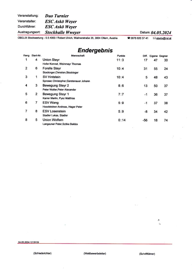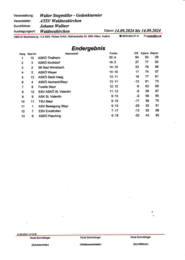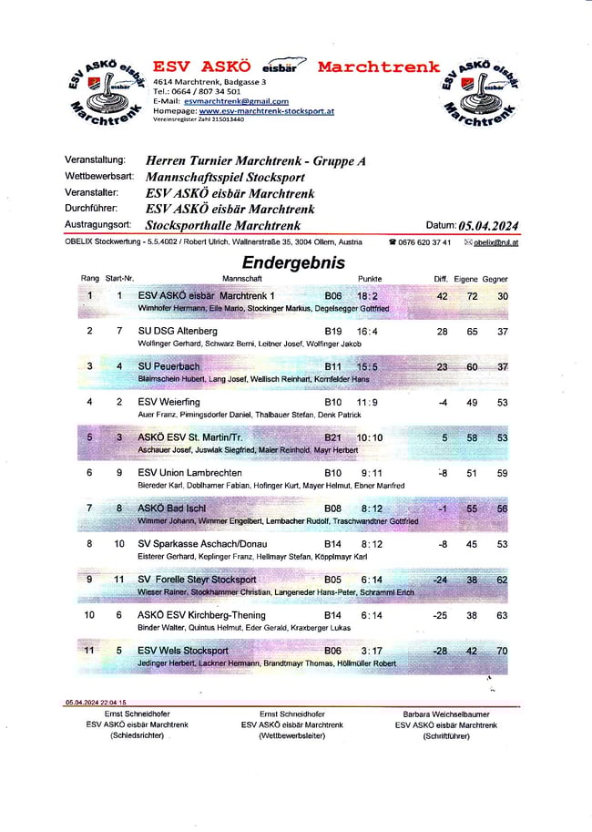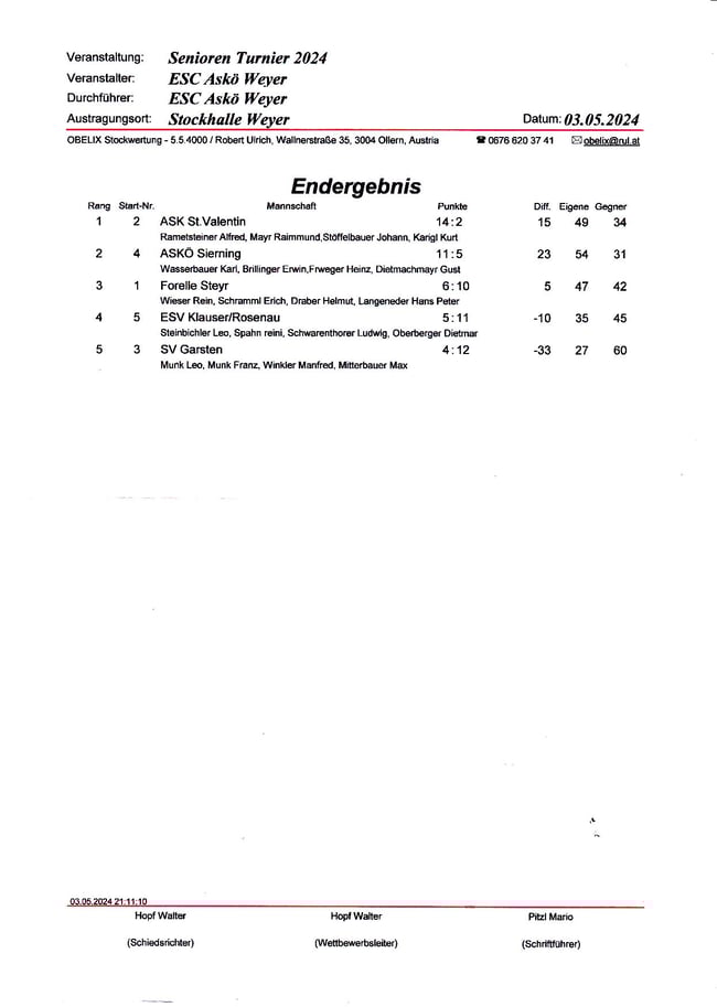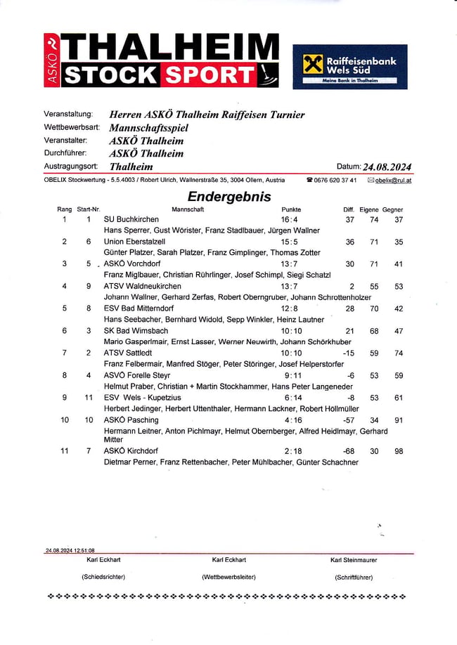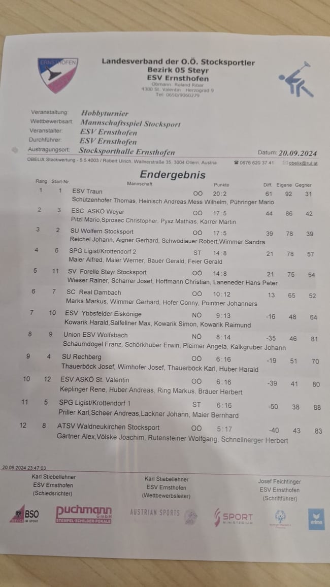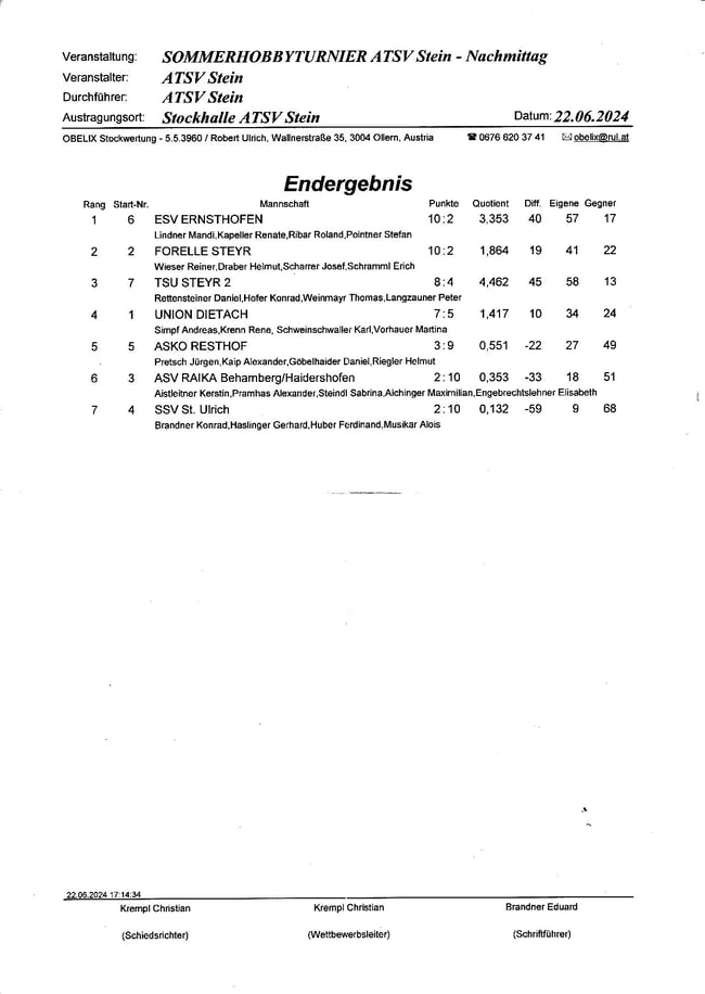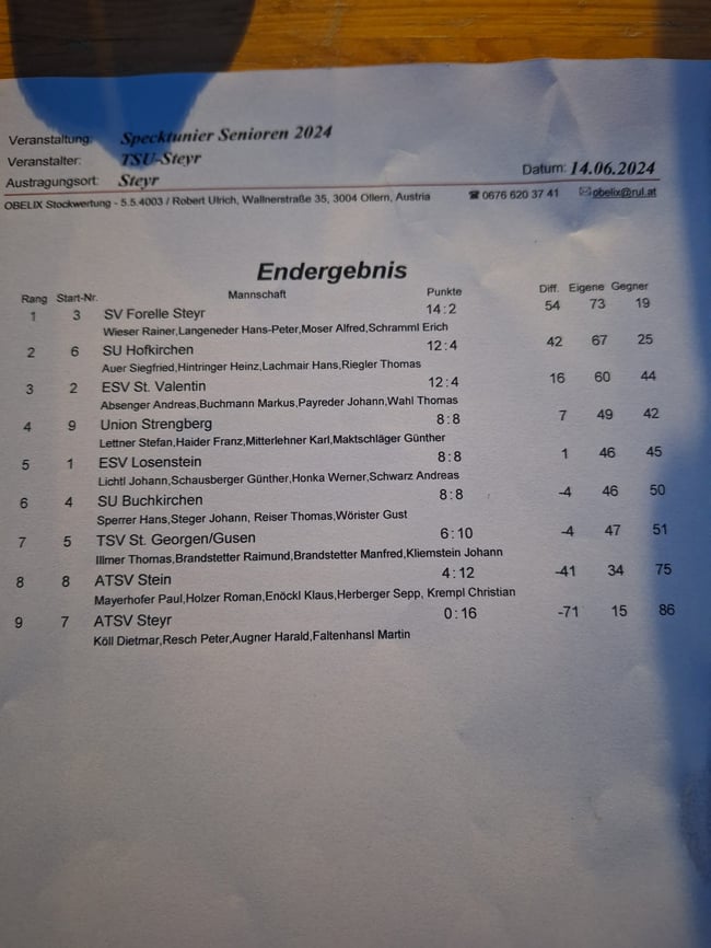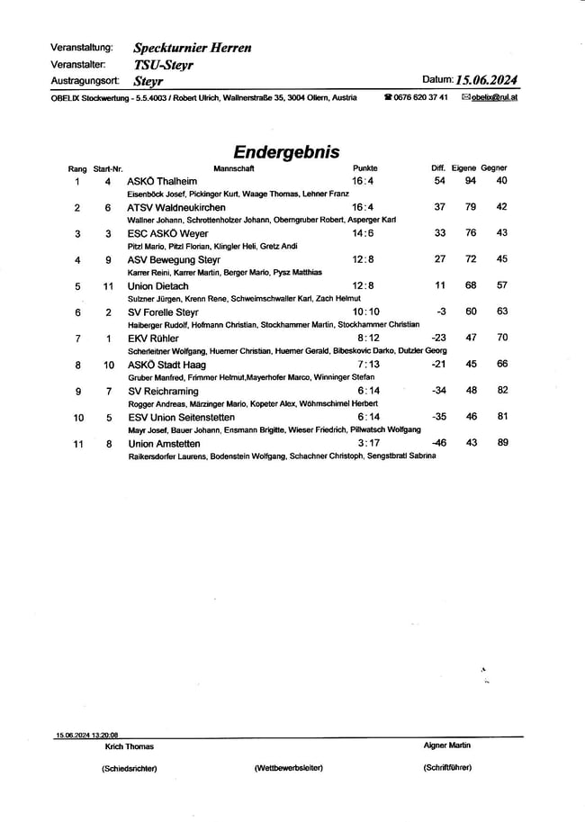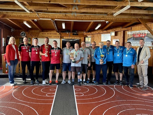 Bei großer Hitze fand die diesjährige Vereinsmeisterschaft auf unserer Anlage statt! Neun Aktive wurden per Los in zwei Mannschaften eingeteilt und spielten sich in sieben Spielen den VM aus! Das Endergebnis war mit 8:6 denkbar knapp und die Mannschaft PIK mit den Schützen Helmut Draber, Christian Hoffmann, Hans Peter Langeneder, Alfred Moser und Johannes Samwald setzte sich letztendlich gegen die Mannschaft Herz mit den Schützen Rudolf Haiberger, Erich Schramml, Christian Stockhammer und Rainer Wieser durch! Im Anschluss gab es ein gemeinsames Essen und der Abend klang gemütlich aus!