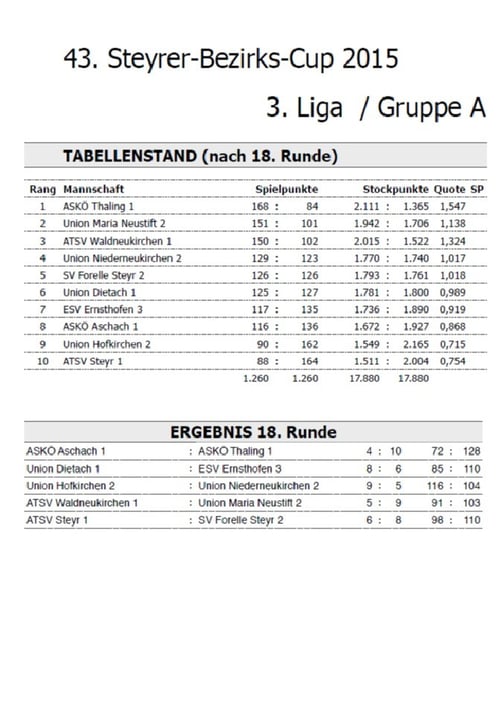 Ergebnis 43. Steyrer-Bezirks-Cup 2015