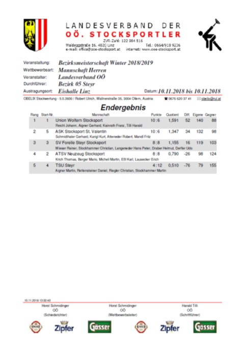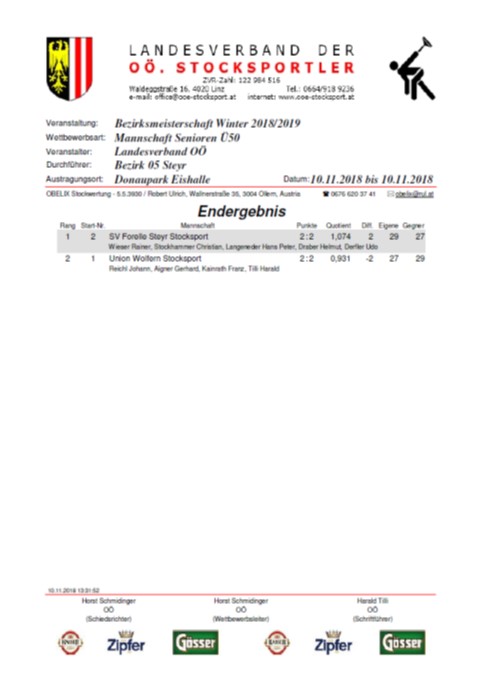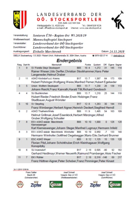 Mit nur zwei Niederlagen und 16 Spielpunkten konnten unsere Schützen die Region für sich entscheiden und qualifizierten sich für die Oberliga am 29.12.2018.