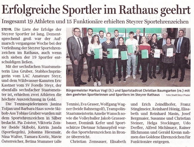 Im Steyrer Rathaus wurde unserem Obmann Udo Derfler das goldene Sportehrenzeichen für Funktionäre der Stadt Steyr verliehen!